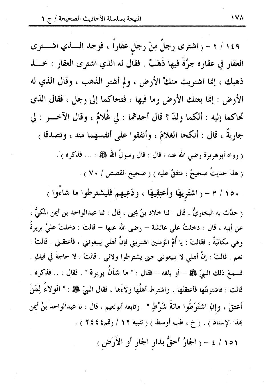 150/ 3 - (اشتَرِيهَا وأعتِقِيهَا، ودَعِيهم فليشترطوا ما شاءُوا).