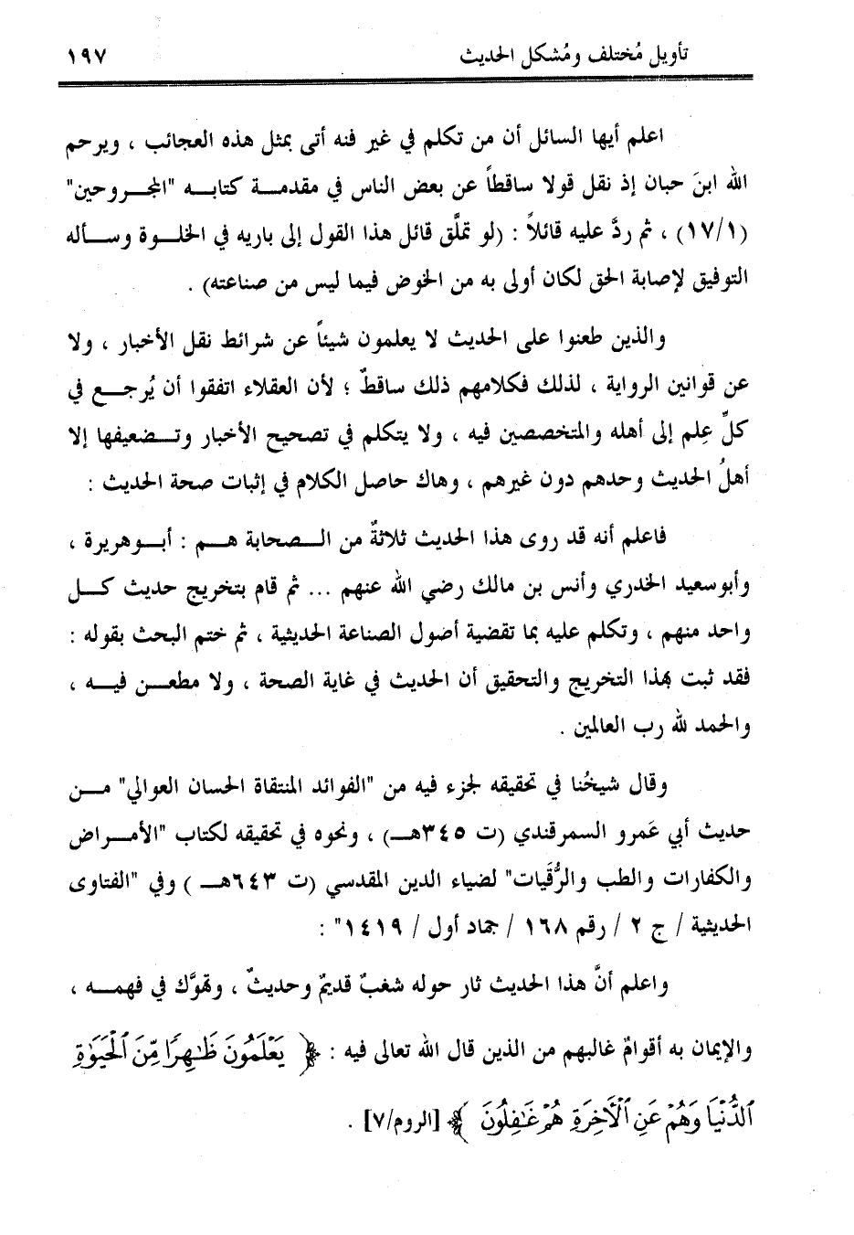 وقال شيخُنا في تحقيقه لجزء فيه من "الفوائد المنتقاة الحسان العوالي" من حديث أبي عَمرو السمرقندي (ت 345 هـ)، ونحوه في تحقيقه لكتاب "الأمراض والكفارات والطب والرُّقَيات" لضياء الدين المقدسي (ت 643 هـ) وفي "الفتاوى الحديثية / ج 2 / رقم 168 / جماد أول 4191":