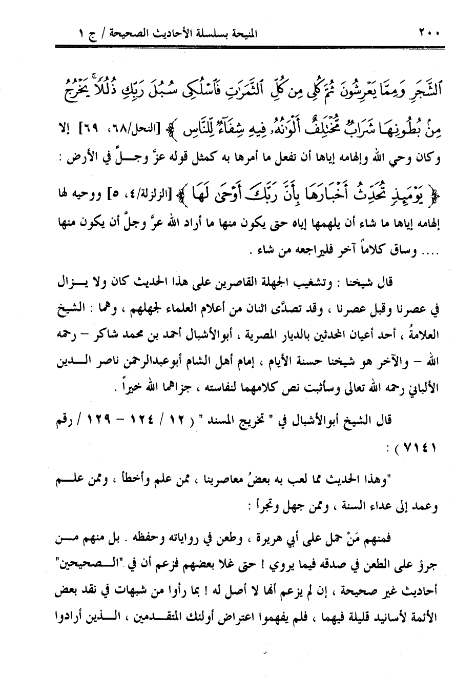 قال شيخنا: وتشغيب الجهلة القاصرين على هذا الحديث كان ولا يزال في عصرنا وقبل عصرنا، وقد تصدَّى اثنان من أعلام العلماء لجهلهم، وهما: الشيخ العلامةُ، أحد أعيان المحدثين بالديار المصرية، أبو الأشبال أحمد بن محمد شاكر - رحمه الله - والآخر هو شيخنا حسنة الأيام، إمام أهل الشام أبو عبد الرحمن ناصر الدين الألباني رحمه الله تعالى وسأثبت نص كلامهما لنفاسته، جزاهما الله خيرًا.