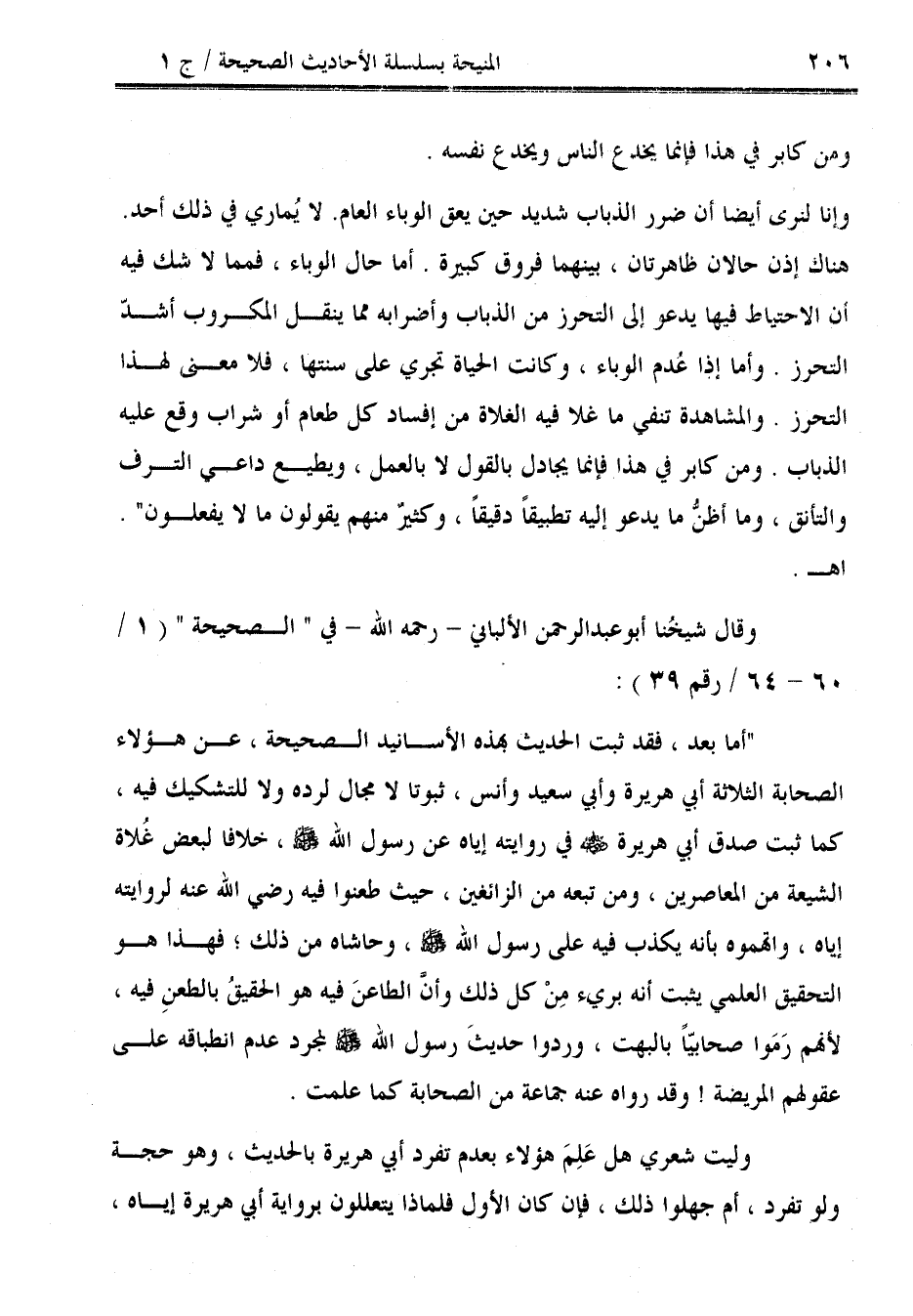 "أما بعد، فقد ثبت الحديث بهذه الأسانيد الصحيحة، عن هؤلاء الصحابة الثلاثة أبي هريرة وأبي سعيد وأنس، ثبوتًا لا مجال لرده ولا للتشكيك فيه، كما ثبت صدق أبي هريرة - رضي الله عنه - في روايته إياه عن رسول الله - صلى الله عليه وسلم -، خلافًا لبعض غُلاة الشيعة من المعاصرين، ومن تبعه من الزائغين، حيث طعنوا فيه رضي الله عنه لروايته إياه، واتهموه بأنه يكذب فيه على رسول الله - صلى الله عليه وسلم -، وحاشاه من ذلك؛ فهذا هو التحقيق العلمي يثبت أنه بريء مِنْ كل ذلك وأنَّ الطاعنَ فيه هو الحقيقُ بالطعنِ فيه، لأنهم رَمَوا صحابيًّا بالبهت، وردوا حديثَ رسول الله - صلى الله عليه وسلم - لمجرد عدم انطباقه على عقولهم المريضة! وقد رواه عنه جماعة من الصحابة كما علمت.