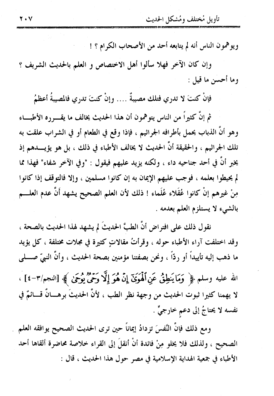 نقول ذلك على افتراض أنَّ الطبُّ الحديثَ لم يشهد لهذا الحديث بالصحة، وقد اختلفت آراء الأطباء حوله، وقرأتُ مقالاتٍ كثيرة في مجلات مختلفة، كل يؤيد ما ذهب إليه تأييدًا أو ردًّا، ونحن بصفتنا مؤمنين بصحة الحديث، وأنَّ النبيّ صلى الله عليه وسلم {وَمَا يَنْطِقُ عَنِ الْهَوَى (3) إِنْ هُوَ إِلَّا وَحْيٌ يُوحَى} [النجم: 3 - 4] , لا يهمنا كثيرا ثبوت الحديث من وجهة نظر الطب، لأنَّ الحديثَ برهانٌ قائمٌ في نفسه لا يحتاجُ إلى دعمٍ خارجيٍّ.