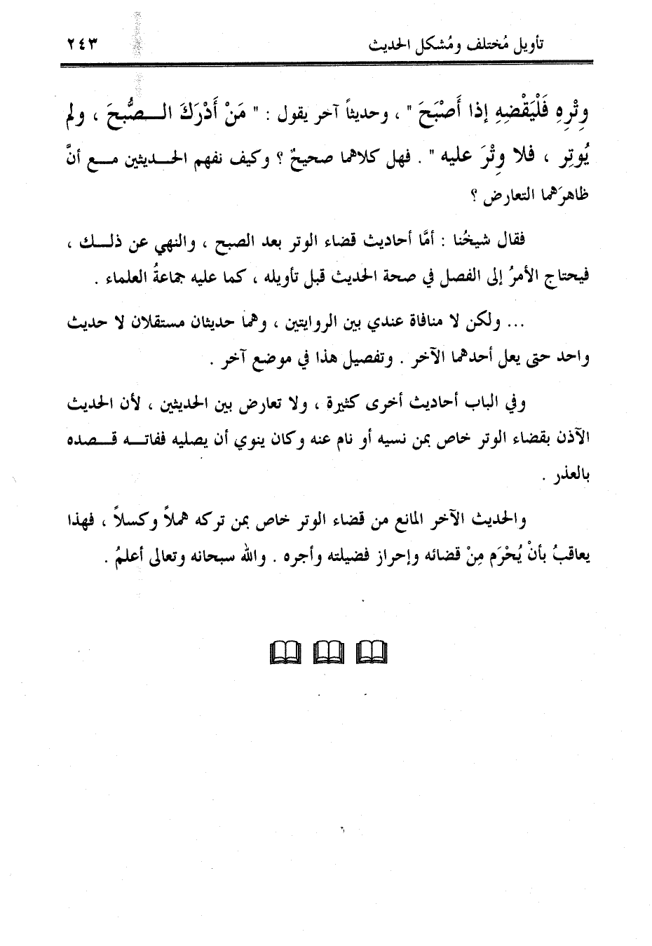 فقال شيخُنا: أمَّا أحاديث قضاء الوتر بعد الصبح، والنهي عن ذلك، فيحتاج الأمرُ إلى الفصل في صحة الحديث قبل تأويله، كما عليه جماعةُ العلماء.