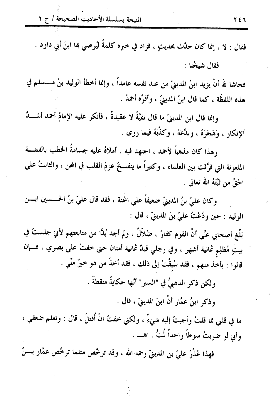 وإنما قال ابن المديني ما قال تقيَّةً لا عقيدةً، فأنكر عليه الإمامُ أحمد أشدّ الإنكار، وَهَجَرَهُ، وبدَّعَهُ، وكذَّبَهُ فيما روى.