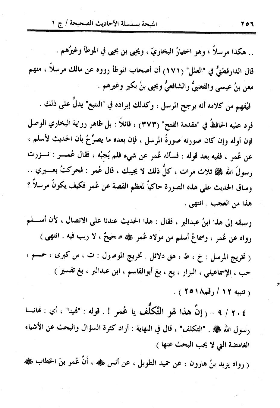 فيُفهم من كلامه أنه يرجح المرسل، وكذلك إيراده في "التتبع" يدلُّ على ذلك. فرد عليه الحافظُ في "مقدمة الفتح" (373)، قائلًا: بل ظاهر رواية البخاري الوصل فإن أوله وإن كان صورته صورةُ المرسل، فإن بعده ما يصرِّحُ بأن الحديث لأسلم، عن عُمر، ففيه بعد قوله: فسأله عُمر عن شيء فلم يُجِبْه، فقال عُمر: نزرت رسولَ الله - صلى الله عليه وسلم - ثلاث مرات، كلُّ ذلك لا يجيبك، قال عُمر: فحركتُ بعيري .. وساق الحديث على هذه الصورة حاكيًا لمعظم القصة عن عُمر فكيف يكونُ مرسلًا؟ هذا من العجب. انتهى.