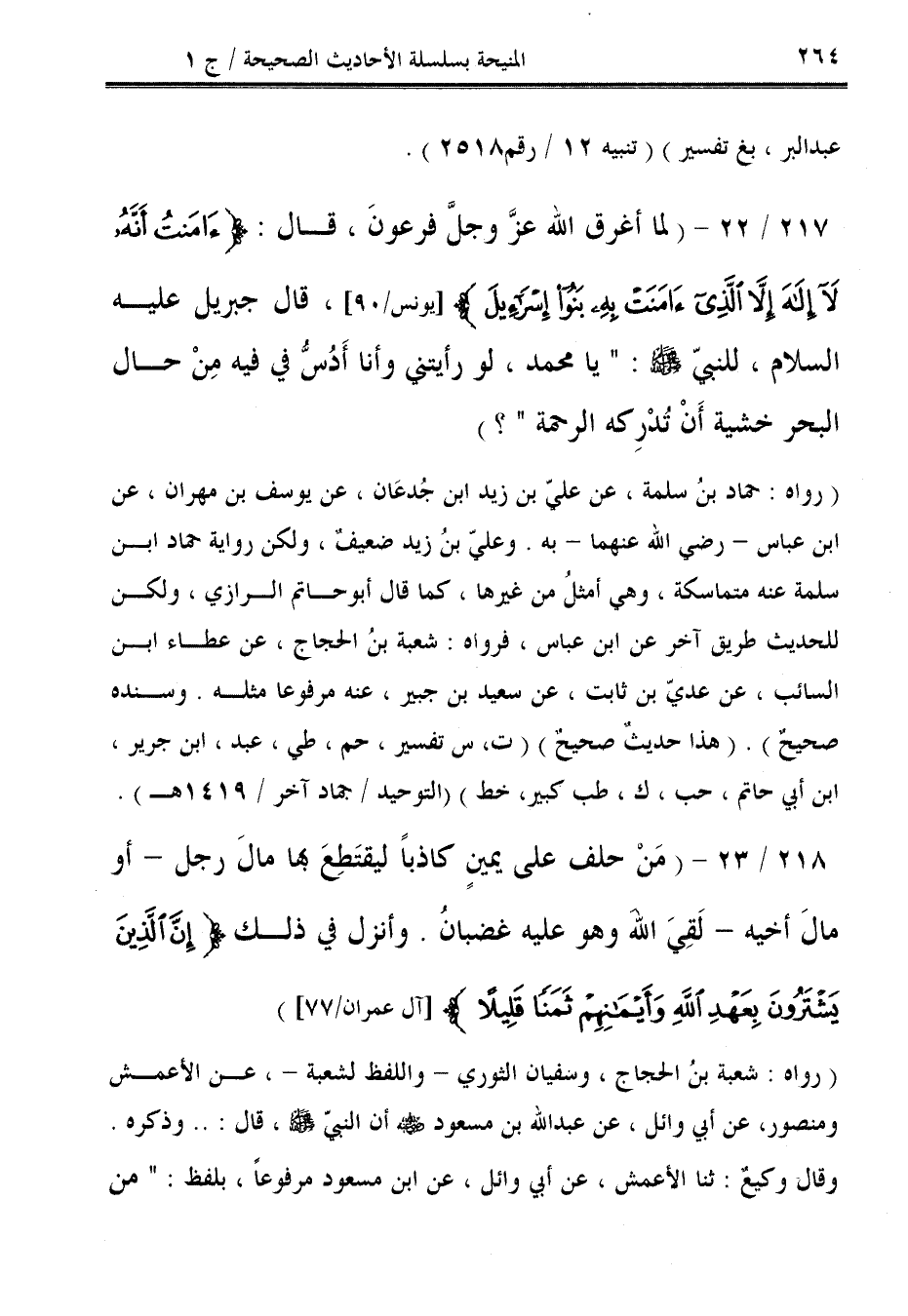 218/ 23 - (مَنْ حلف على يمينٍ كاذبًا ليقتَطِعَ بها مالَ رجل -أو مالَ أخيه- لَقِيَ الله وهو عليه غضبانُ. وأنزل في ذلك {إِنَّ الَّذِينَ يَشْتَرُونَ بِعَهْدِ اللَّهِ وَأَيْمَانِهِمْ ثَمَنًا قَلِيلًا} [آل عمران / 77]) (رواه: شعبة بنُ الحجاج، وسفيان الثوري -واللفظ لشعبة-، عن الاعمش ومنصور، عن أبي وائل، عن عبد الله بن مسعود - رضي الله عنه - أن النبيّ - صلى الله عليه وسلم -، قال: .. وذكره.