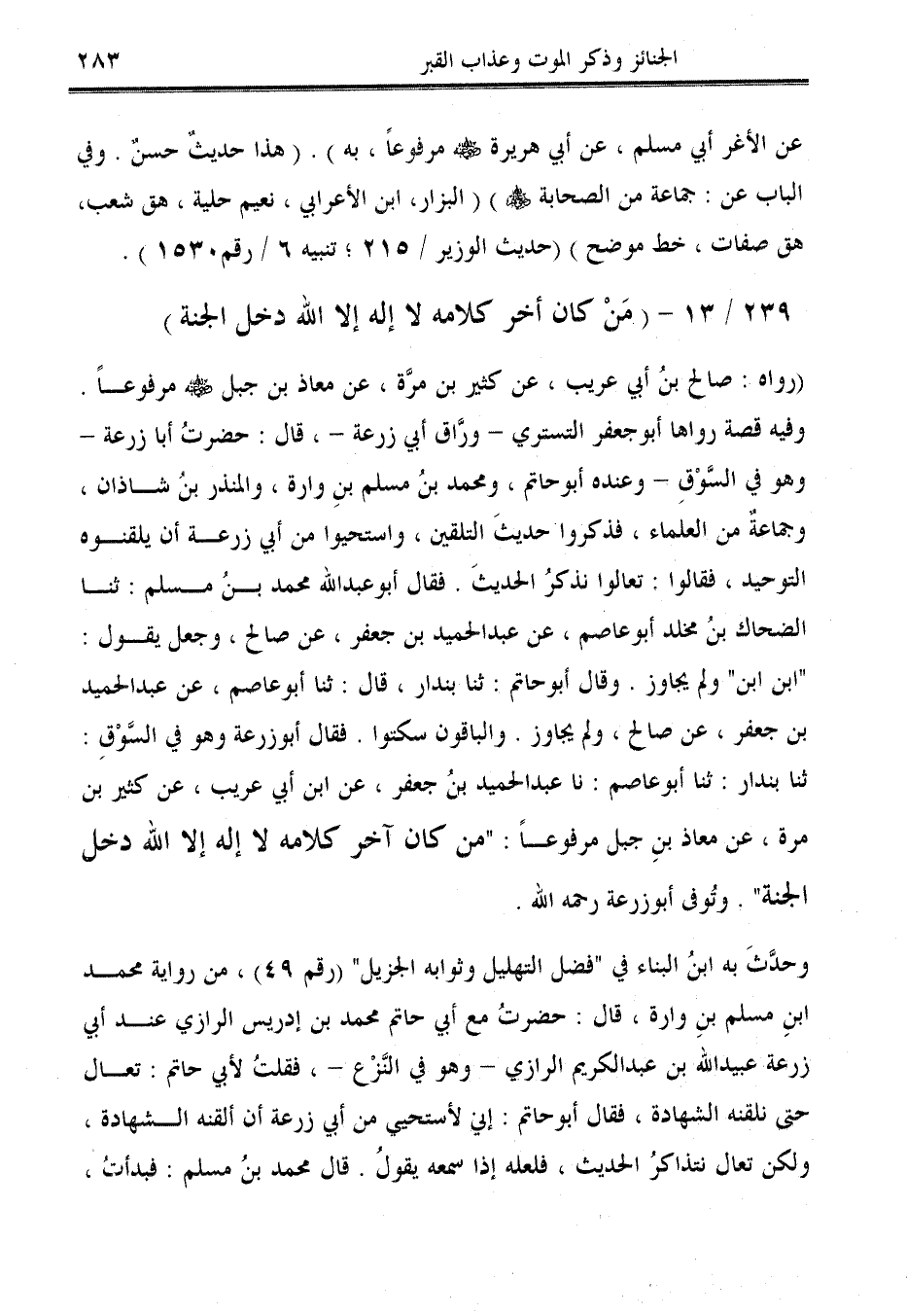 239/ 13 - (مَنْ كان آخر كلامه لا إله إلا الله دخل الجنة).