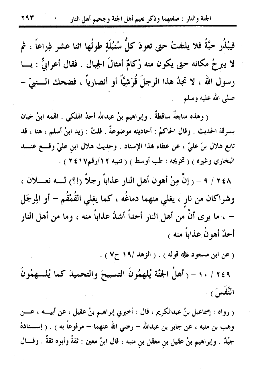 248/ 9 - (إنَّ مِنْ أهون أهل النار عذابًا رجلًا (!؟) له نعلان، وشراكان من نارٍ، يغلي منهما دماغُه، كما يغلي القمْقُم -أو المِرجَل-، ما يرى أنَّ من أهل النار أحدًا أشدَّ عذابًا منه، وما من أهل النار أحدٌ أهونُ عذابًا منه).