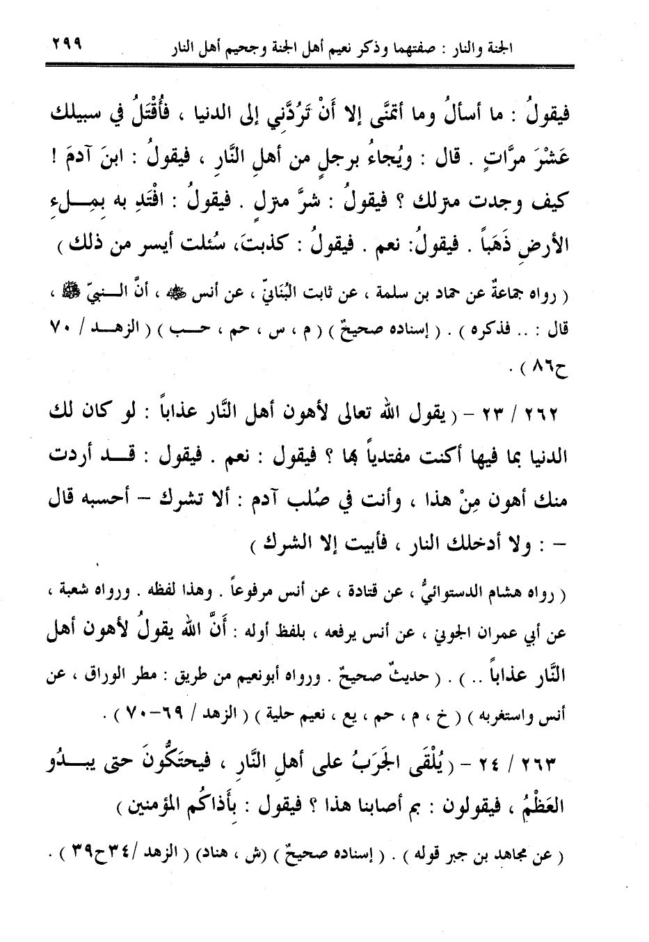 (رواه هشام الدستوائيُّ، عن قتادة، عن أنس مرفوعًا. وهذا لفظه. ورواه شعبة، عن أبي عمران الجوني، عن أنس يرفعه، بلفظ أوله: أَنَّ الله يقولُ لأهون أهل النَّار عذابًا ..). (حديثٌ صحيحٌ. ورواه أبو نعيم من طريق: مطر الوراق، عن أنس واستغربه) (خ، م، حم، يع، نعيم حلية) (الزهد / 69 - 70).