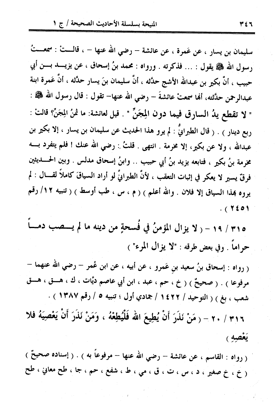 315/ 19 - (لا يزال المؤمنُ في فُسحة من دينه ما لم يصب دمًا حرامًا. وفي بعض طرقه: "لا يزال المرء").