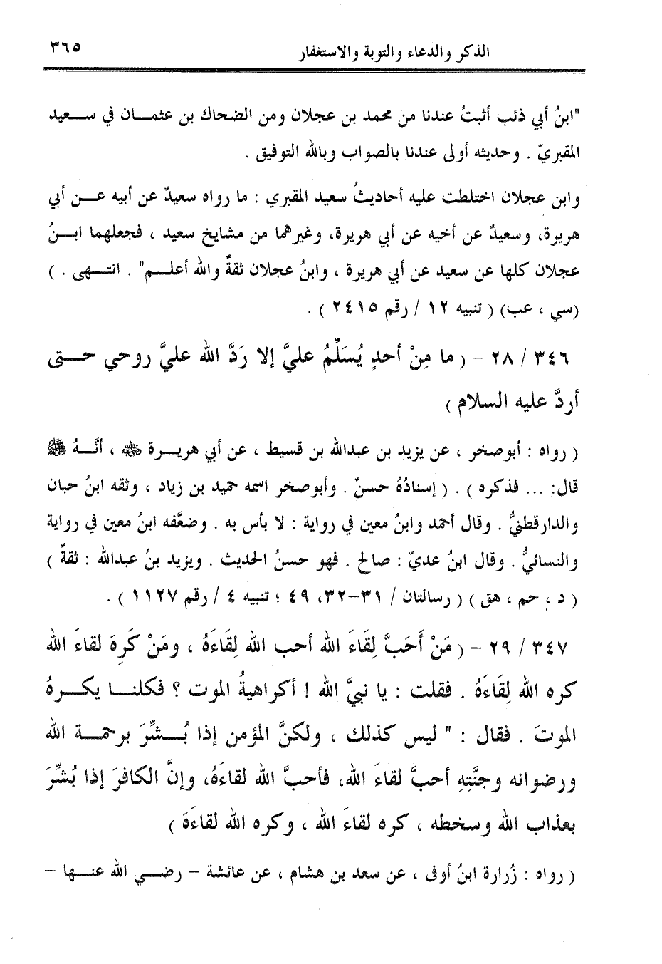 346/ 28 - (ما مِنْ أحدٍ يُسَلِّمُ عليَّ إلا رَدَّ الله عليَّ روحي حتى أردَّ - عليه السلام -).