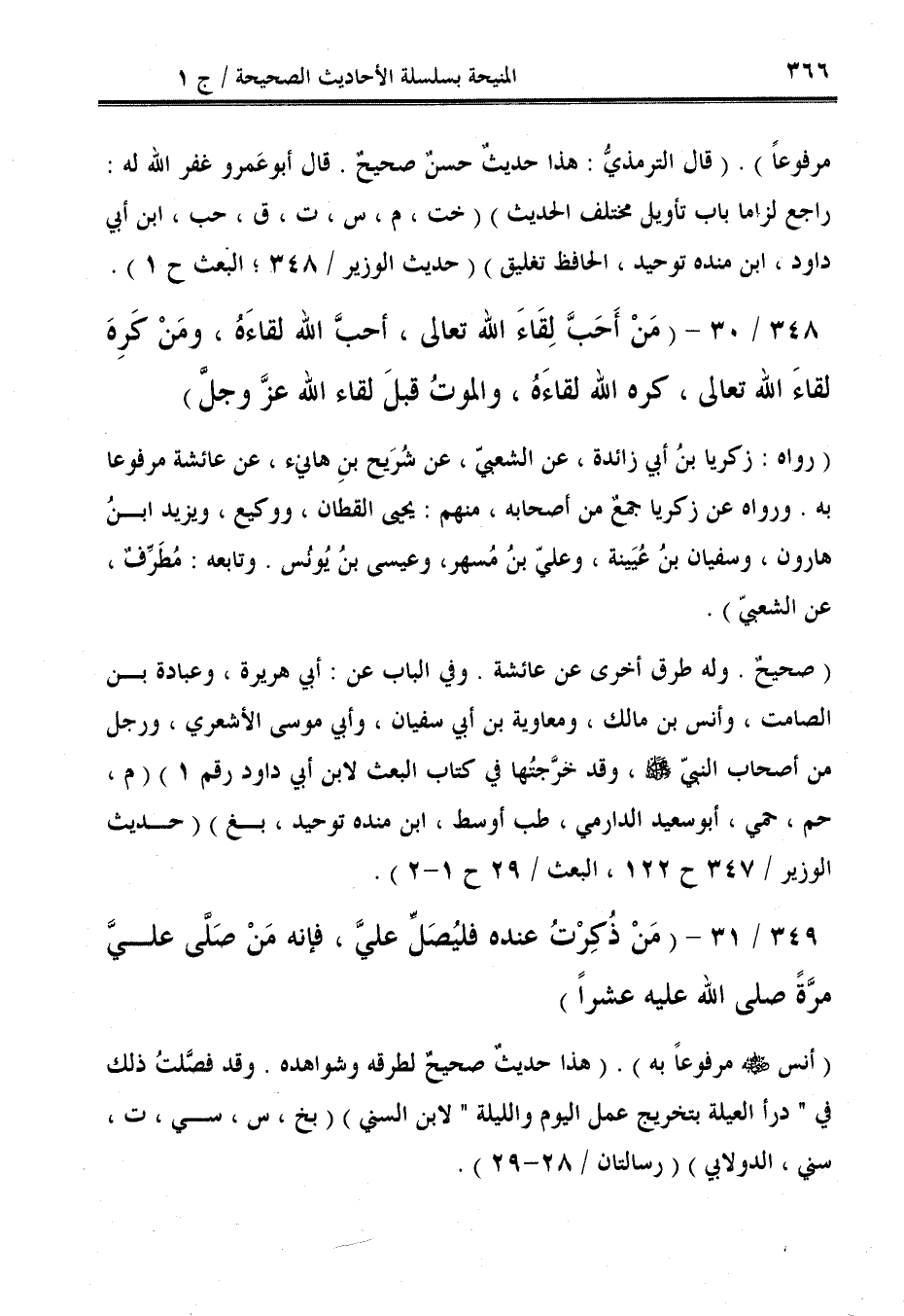 348/ 30 - (مَنْ أَحَبَّ لِقَاءَ الله تعالى، أحبَّ الله لقاءَهُ، ومَنْ كَرِهَ لقاءَ الله تعالى، كره الله لقاءَهُ، والموتُ قبلَ لقاء الله عزَّ وجلَّ).