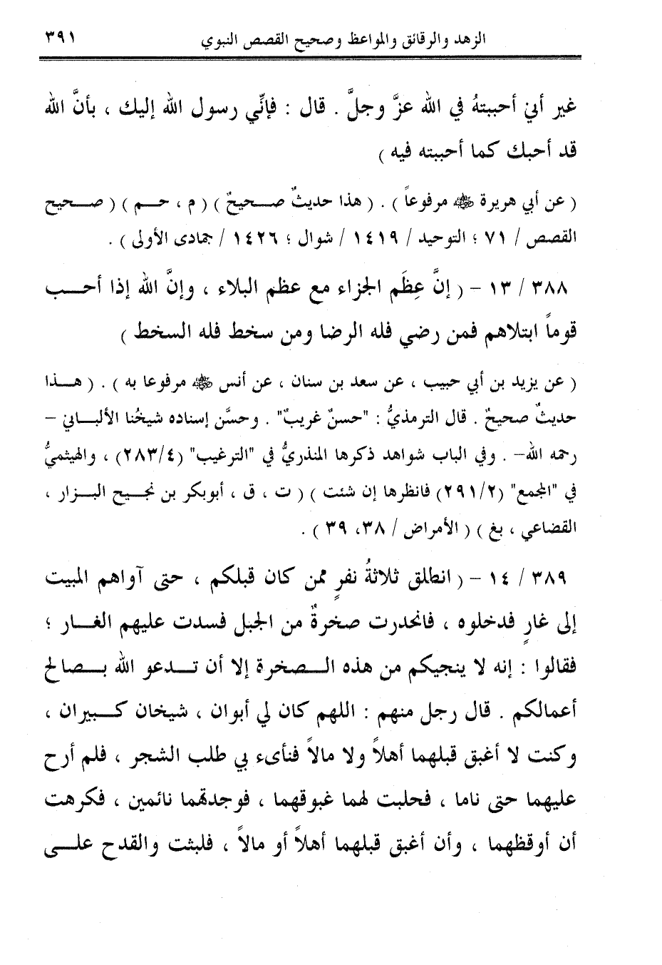 388/ 13 - (إنَّ عِظَم الجزاء مع عظم البلاء، وإنَّ الله إذا أحب قومًا ابتلاهم فمن رضي فله الرضا ومن سخط فله السخط).