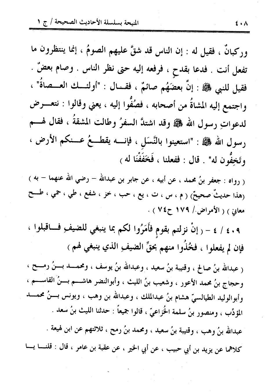 409/ 4 - (إنْ نزلتم بقومٍ فأَمَرُوا لكم بما ينبغي للضيفِ فاقبلوا، فإن لم يفعلوا، فخذُوا منهم بحقِّ الضيفِ الذي ينبغي لهم).