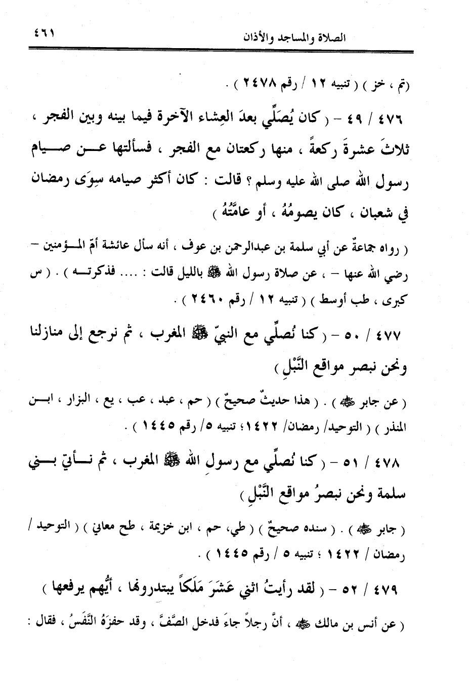 478/ 51 - (كنا نُصلِّي مع رسولِ الله - صلى الله عليه وسلم - المغرب، ثم نأتي بني سلمة ونحن نبصرُ مواقع النَّبْلِ).