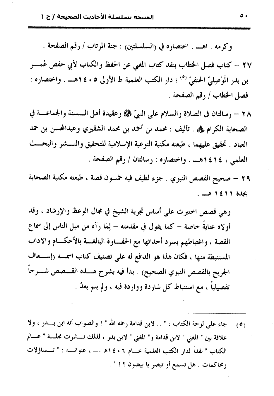 (¬5) جاء على لوحة الكتاب: " .. لابن قدامة رحمه الله"! والصواب أنه ابن بدر، ولا علاقة بين "المغني" لابن قدامة و"المغني" لابن بدر، لذلك نشرت مجلة "عالم الكتاب" نقدًا لدار الكتب العلمية عام 1406 هـ، عنوانه: "تساؤلات ومحاكمات: هل تسمع أو تبصر يا بيضون؟! ".