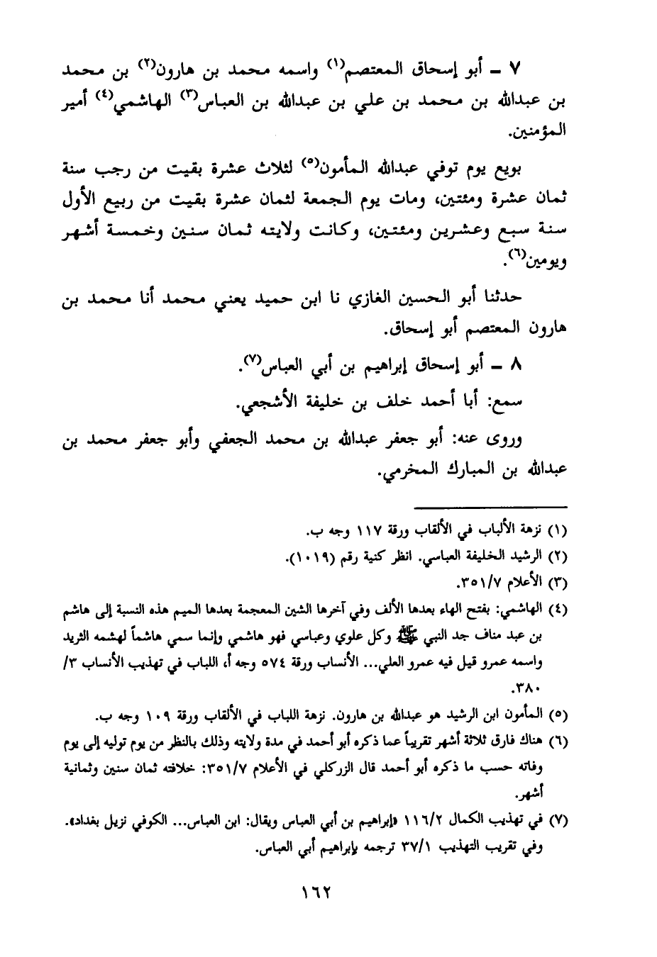 7- أبو إسحاق المعتصم ، وَاسْمُه محمد بن هارون بن محمد بن عبد الله بن محمد بن علي بن عبد الله بن العباس الهاشمي أمير المؤمنين.