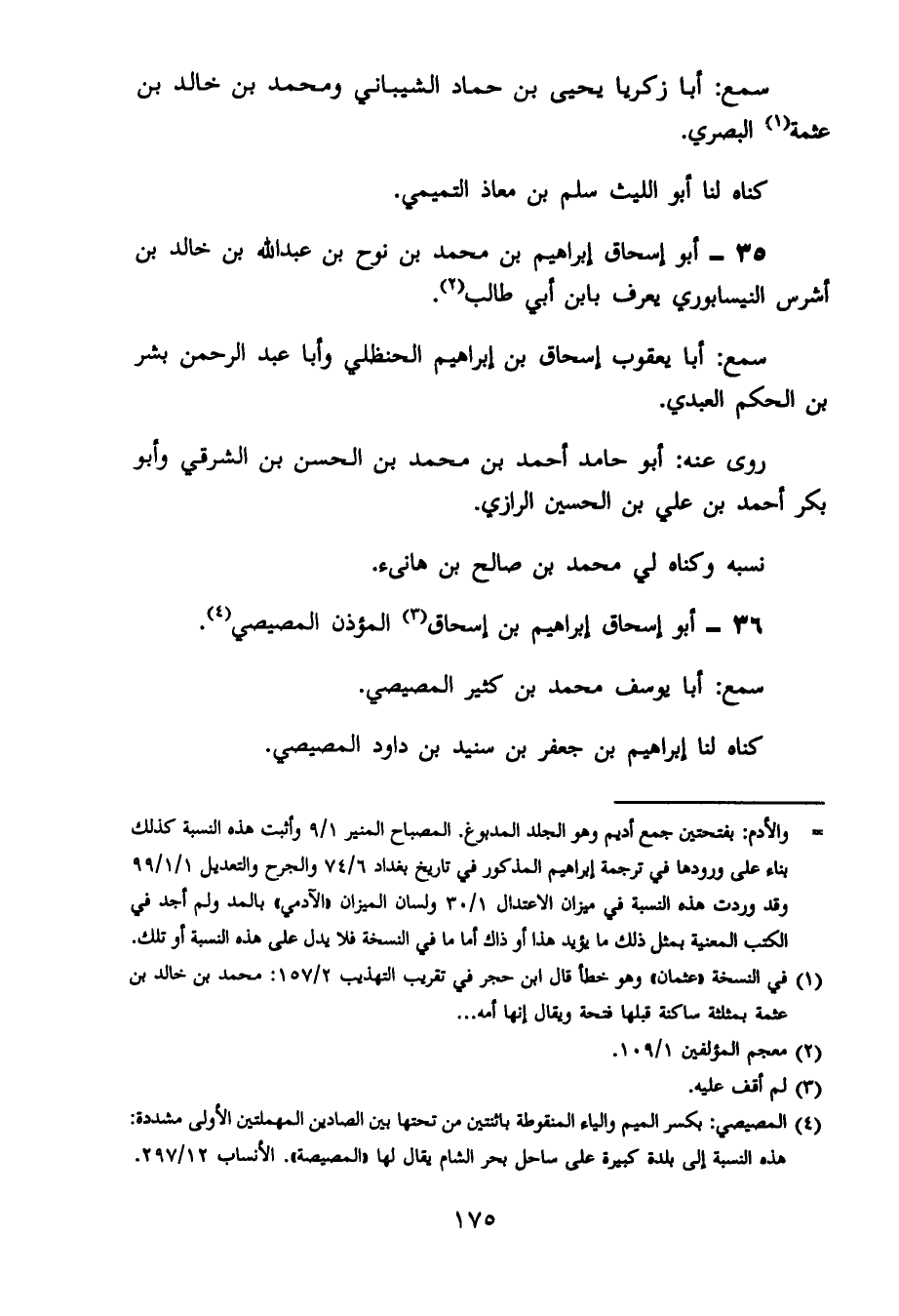 36- أبو إسحاق إبراهيم بن إسحاق المؤذن المصيصي.