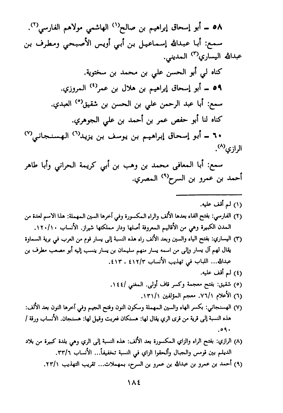 58- أبو إسحاق إبراهيم بن صالح الهاشمي مولاهم الفارسي.