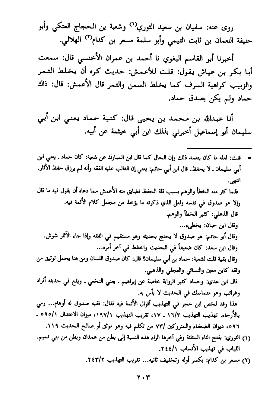 أخبرنا أبو القاسم البغوي ، حَدَّثنا أحمد بن عمران الأخنسي قال : سمعت أبا بكر بن عياش يقول : قلت للأعمش : حديث كره أن يخلط التمر والزبيب كراهية السرف كما يخلط السمن والتمر قال الأعمش : قال : ذاك حماد ، وَلم يكن يصدق حماد.