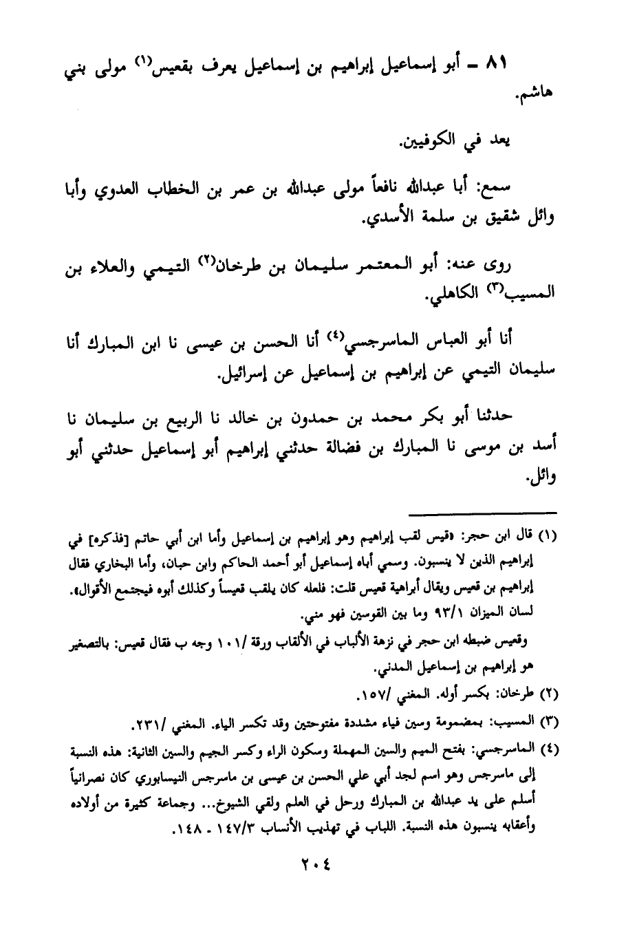 81- أبو إسماعيل إبراهيم بن إسماعيل يعرف بقعيس مولى بني هاشم.