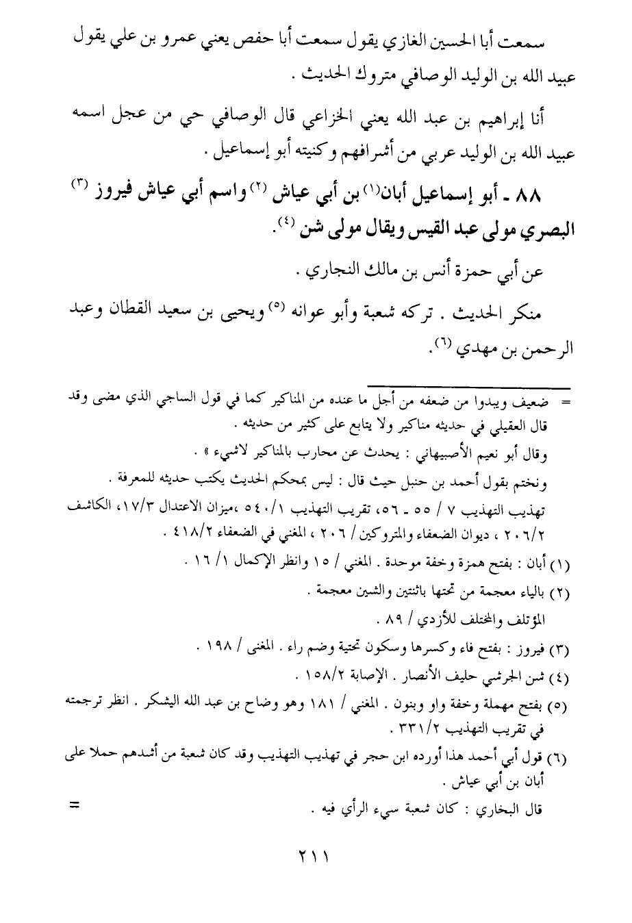 88- أبو إسماعيل أبان بن أبي عياش ، وَاسْمُ أبي عياش فيروز البصري مولى عبد القيس ، وَيُقَال : مولى شن.