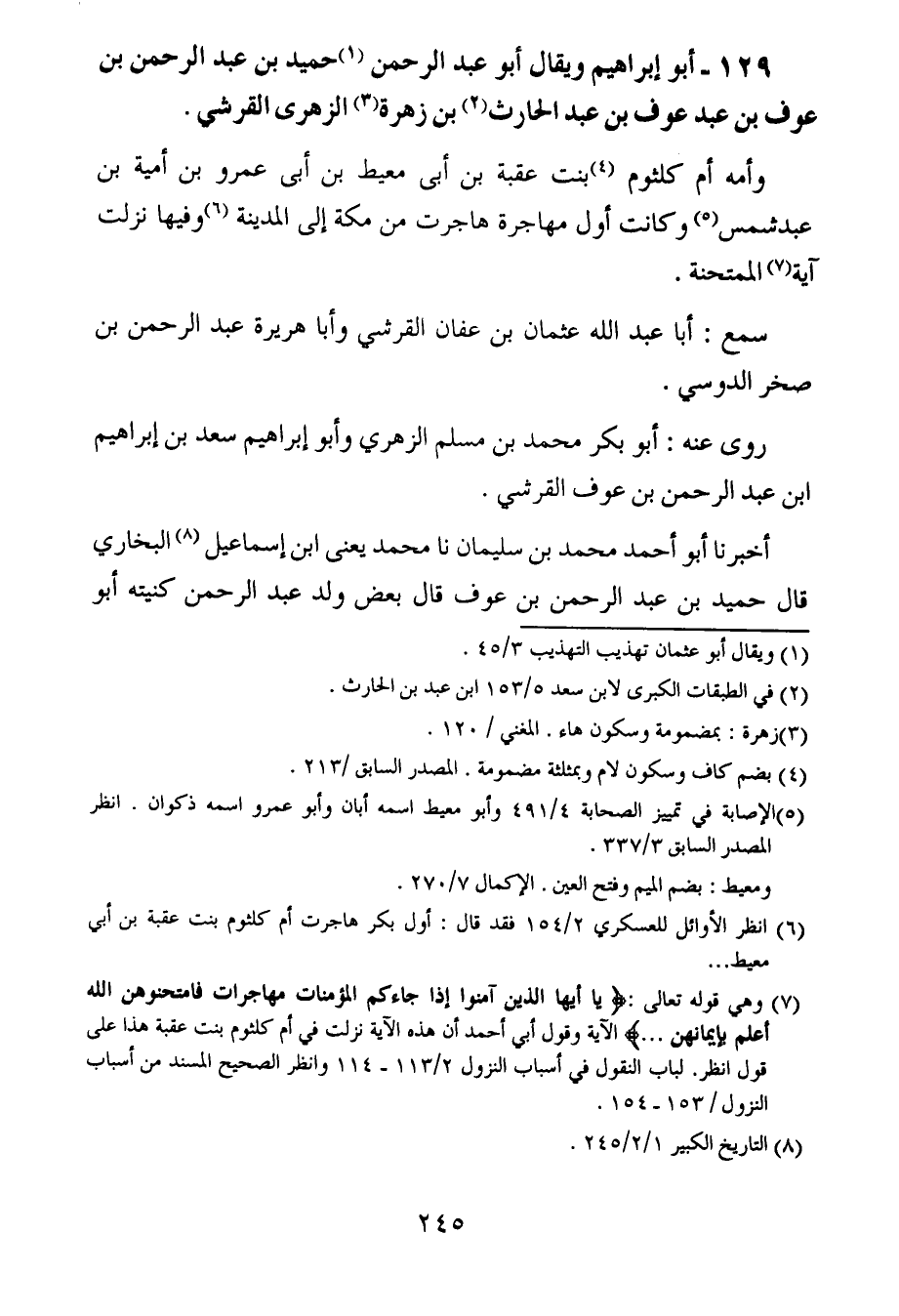 129- أبو إبراهيم ، وَيُقَال : أبو عبد الرحمن حميد بن عبد الرحمن بن عوف بن عبد عوف بن عبد الحارث بن زهرة الزهري القرشي.