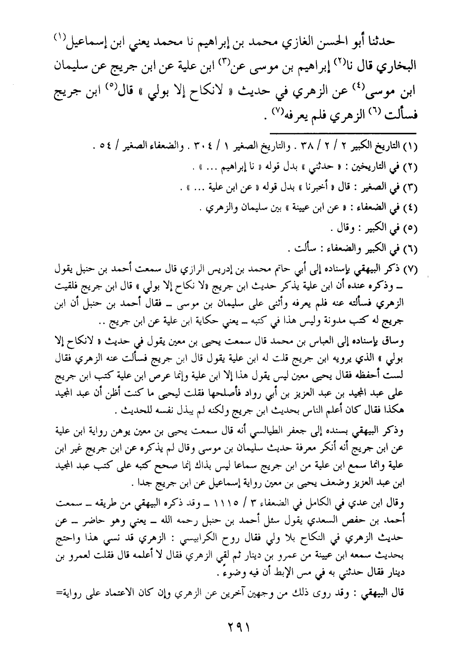 حدثنا أبو الحسن الغازي محمد بن إبراهيم ، حَدَّثنا محمد ، يَعنِي ابن إسماعيل البخاري قال ، حَدَّثنا إبراهيم بن موسى عن ابن علية عن ابن جريج عن سُليمان بن موسى ، عَن الزُّهْرِيّ في حديث لا نكاح إلا بولي قال ابن جريج فسألت الزهري فلم يعرفه.