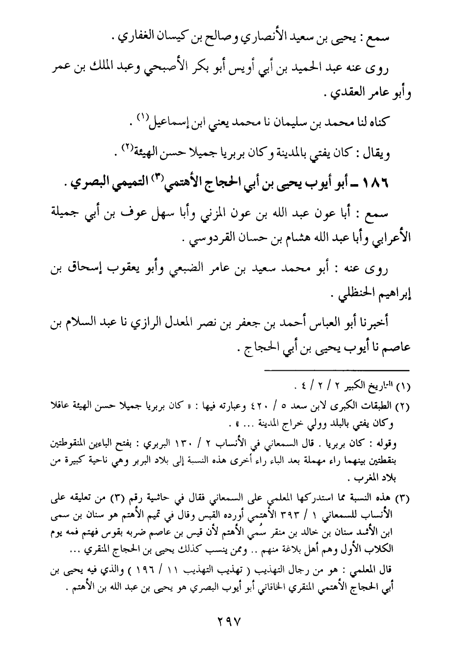 186- أبو أيوب يحيى بن أبي الحجاج الأهتمي التميمي البصري.