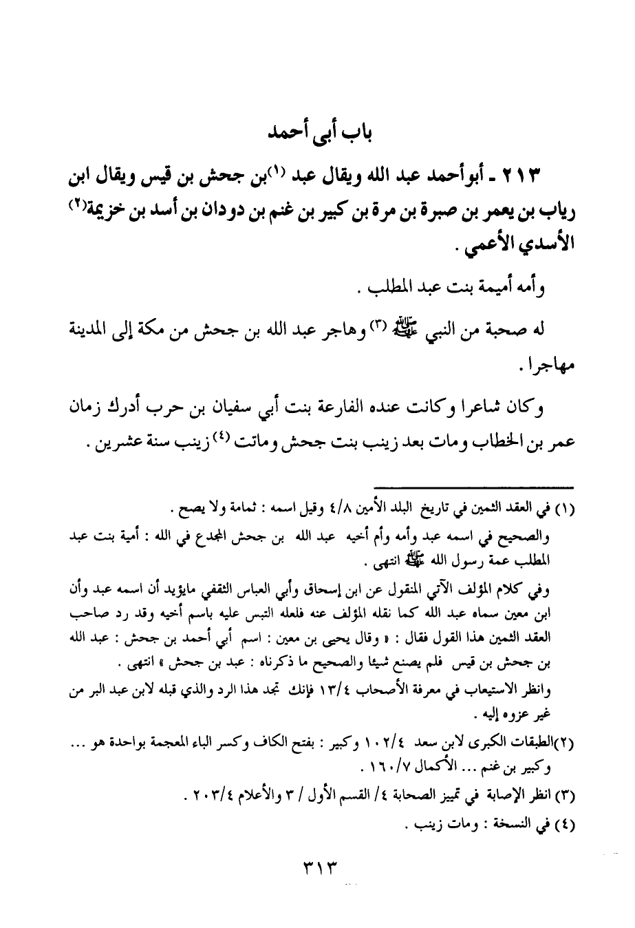 213- أبو أحمد عبد الله ، وَيُقَال : عبد بن جحش بن قيس ، وَيُقَال : ابن رياب بن يعمر بن صبرة بن مرة بن كبير بن غنم بن دودان بن أسد بن خزيمة الأسدي الأعمى.