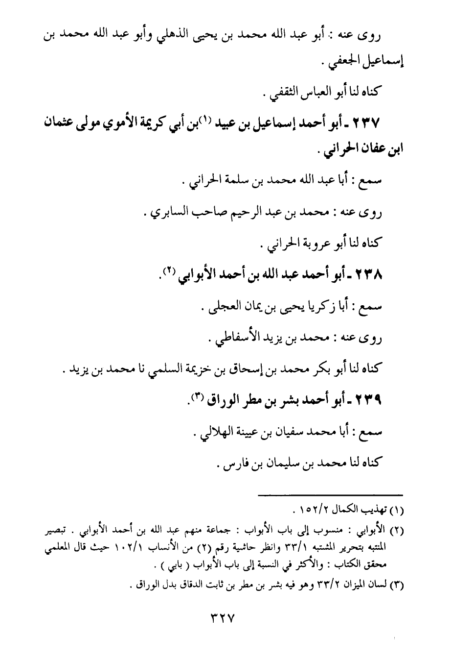 237- أبو أحمد إسماعيل بن عبيد بن أبي كريمة الأموي مولى عثمان بن عفان الحراني.