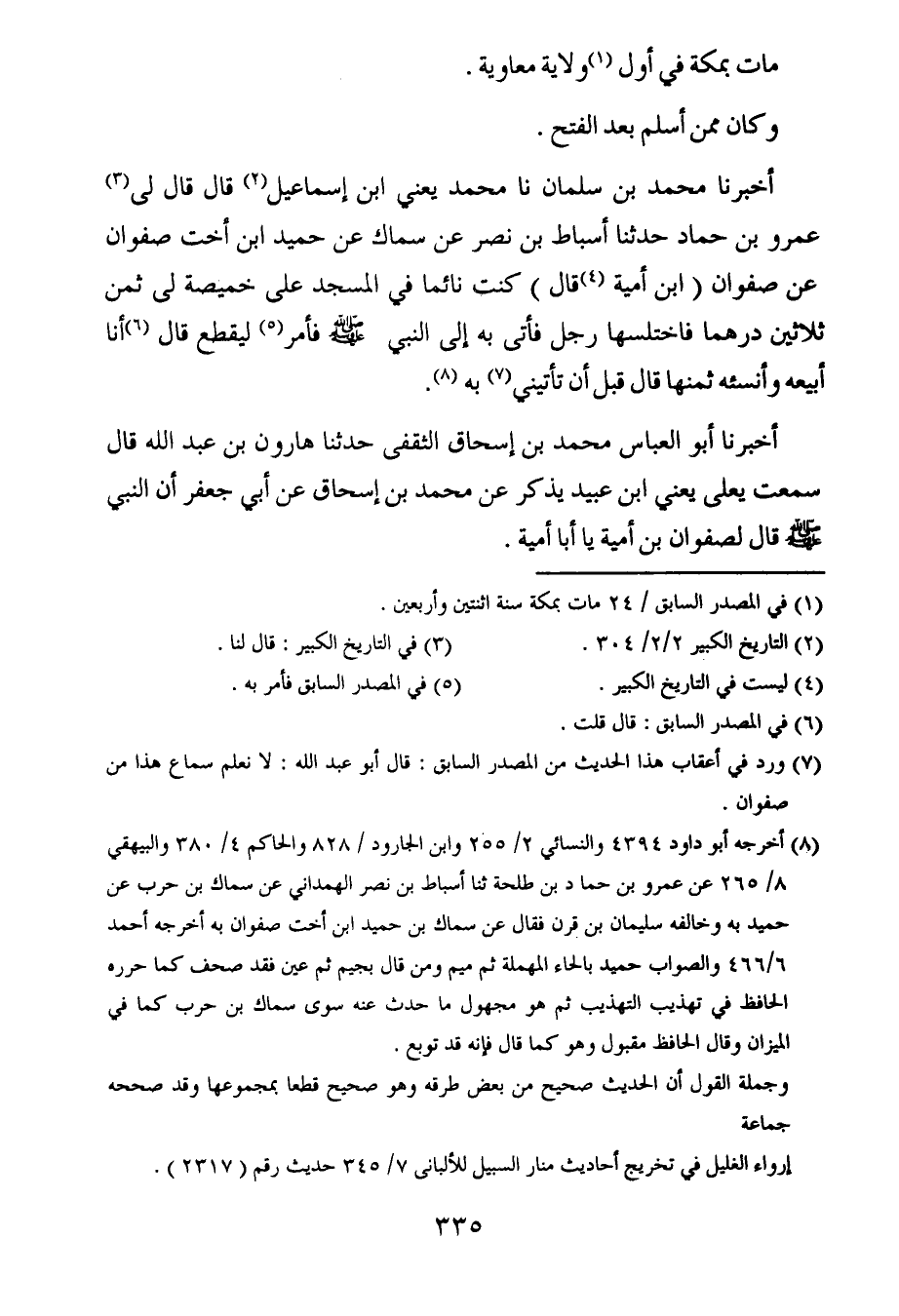 أخبرنا أبو العباس محمد بن إسحاق الثقفي حدثنا هارون بن عبد الله ، قال : سَمِعتُ يعلى ، يَعنِي ابن عبيد يذكر عن محمد بن إسحاق عن أبي جعفر أن النبي صلى الله عليه وسلم قال لصفوان بن أمية ياأبا أمية.