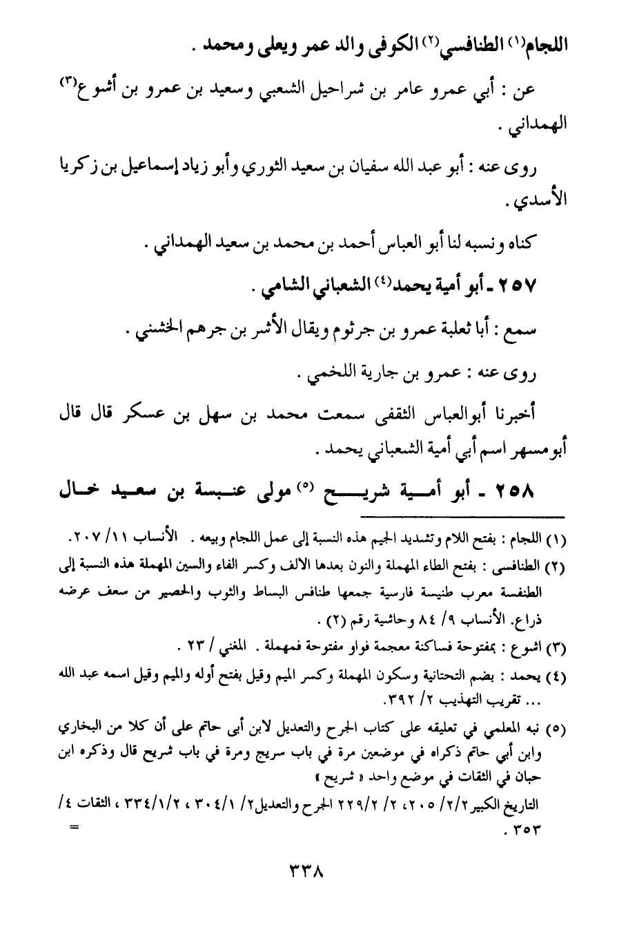 256- أبو أمية ، وَيُقَال : أبو الفضل عبيد بن عبد الرحمن الأيامي اللجام الطنافسي الكوفي والد عُمَر ويعلى ومحمد.