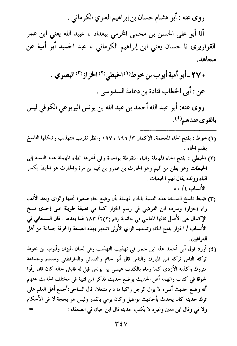 أَخْبَرنا أبو علي الحسن بن محمي المخرمي ببغداد ، حَدَّثنا عبيد الله ، يَعنِي ابن عُمَر القواريري ، حَدَّثنا حسان ، يَعنِي ابن إبراهيم الكرماني ، حَدَّثنا عبد الحميد أبو أمية عن مجاهد.