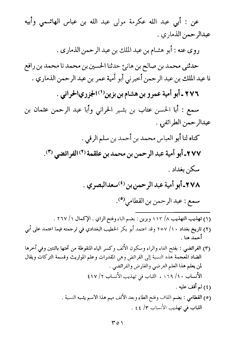 277- أبو أمية عبد الرحمن بن محمد بن علقمة الفرائضي.