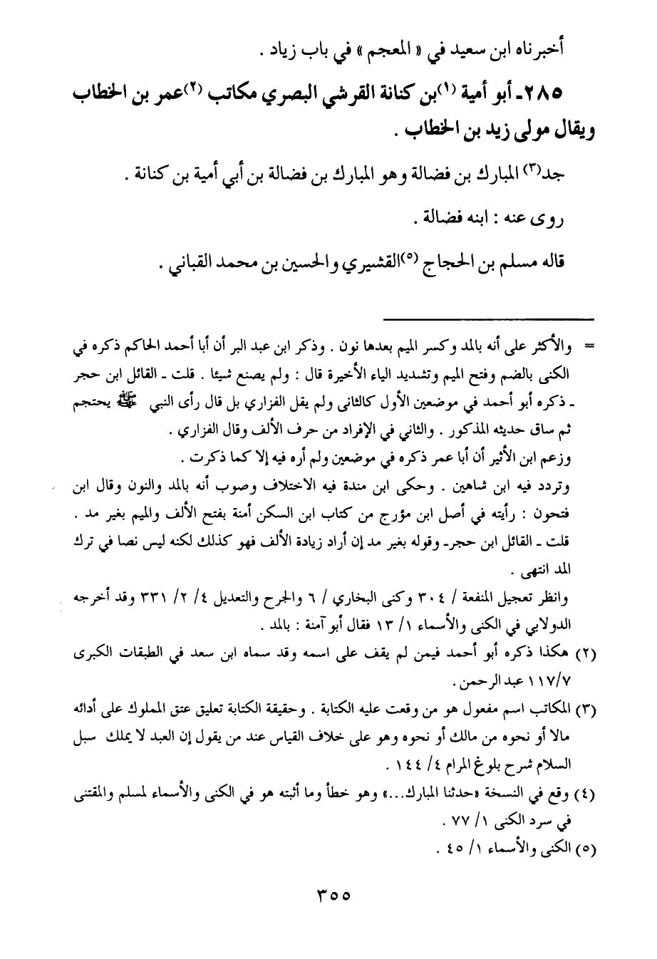 285- أبو أمية بن كنانة القرشي البصري مكاتب عُمَر بن الخطاب ، وَيُقَال : مولى زيد بن الخطاب.
