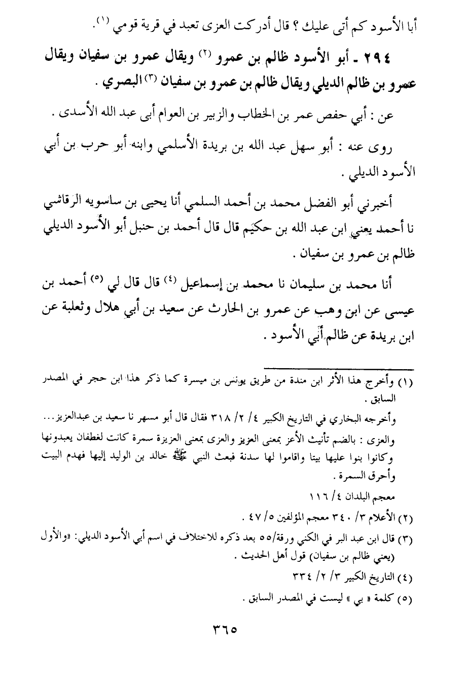 أخبرني أبو الفضل محمد بن أحمد السلمي ، أَخْبَرنا يحيى بن ساسويه الرقاشي ، حَدَّثنا أحمد ، يَعنِي ابن عبد الله بن حكيم ، قال : قال أحمد بن حنبل أبو الأسود الديلي ظالم بن عَمْرو بن سفيان.