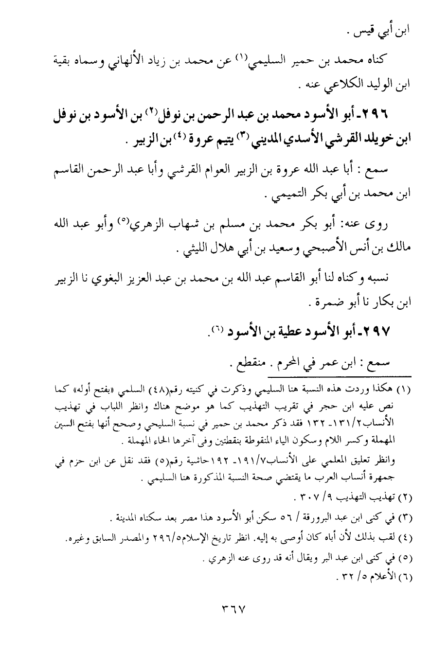 296- أبو الأسود محمد بن عبد الرحمن بن نوفل بن الأسود بن نوفل بن خويلد القرشي الأسدي المديني يتيم عروة بن الزبير.