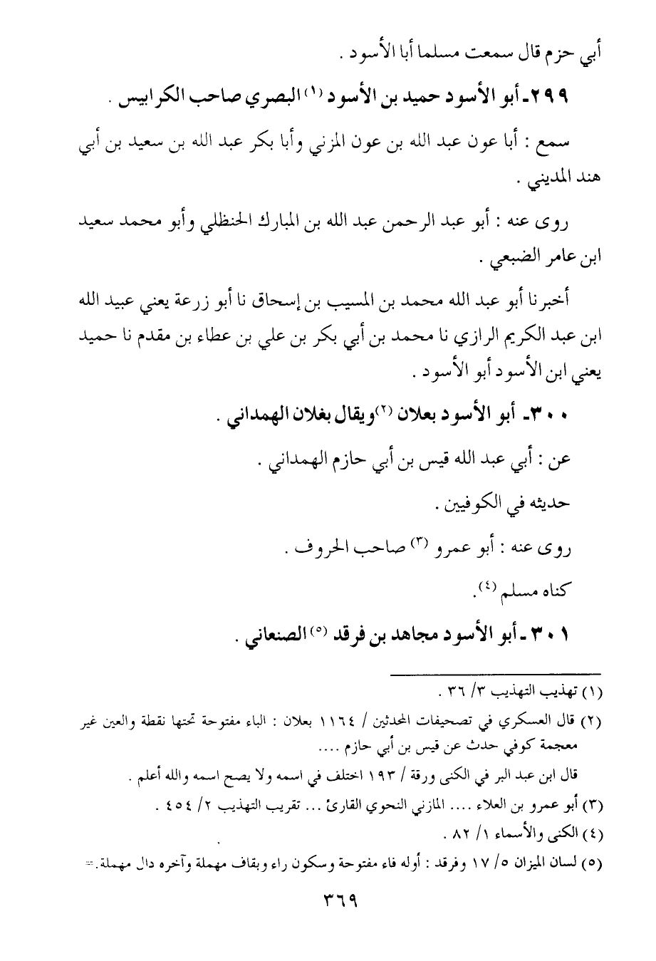 299- أبو الأسود حميد بن الأسود البصري صاحب الكرابيس.