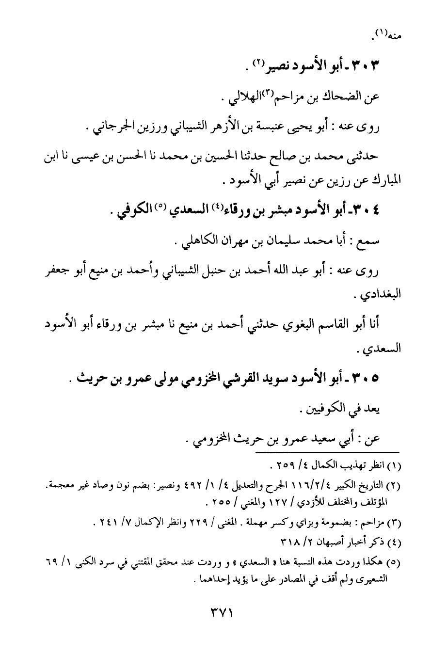 304- أبو الأسود مبشر بن ورقاء السعدي الكوفي.