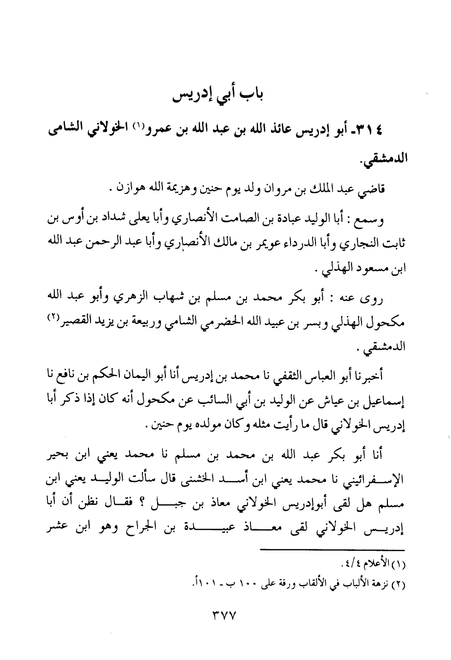 314- أبو إدريس عائذ الله بن عبد الله بن عَمْرو الخولاني الشامي الدمشقي.