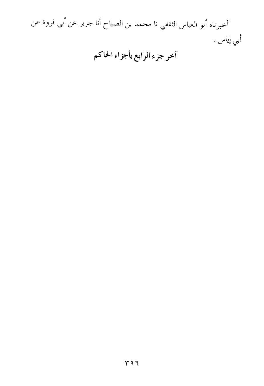 أخبرنا أبو العباس الثقفي ، حَدَّثنا محمد بن الصباح ، أَخْبَرنا جرير عن أبي فروة عن أبي إياس.