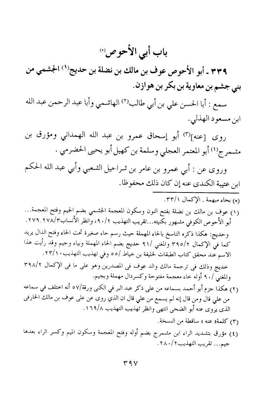 339- أبو الأحوص عوف بن مالك بن نضلة بن حديج الجشمي من بني جشم بن معاوية بن بكر بن هوازن.