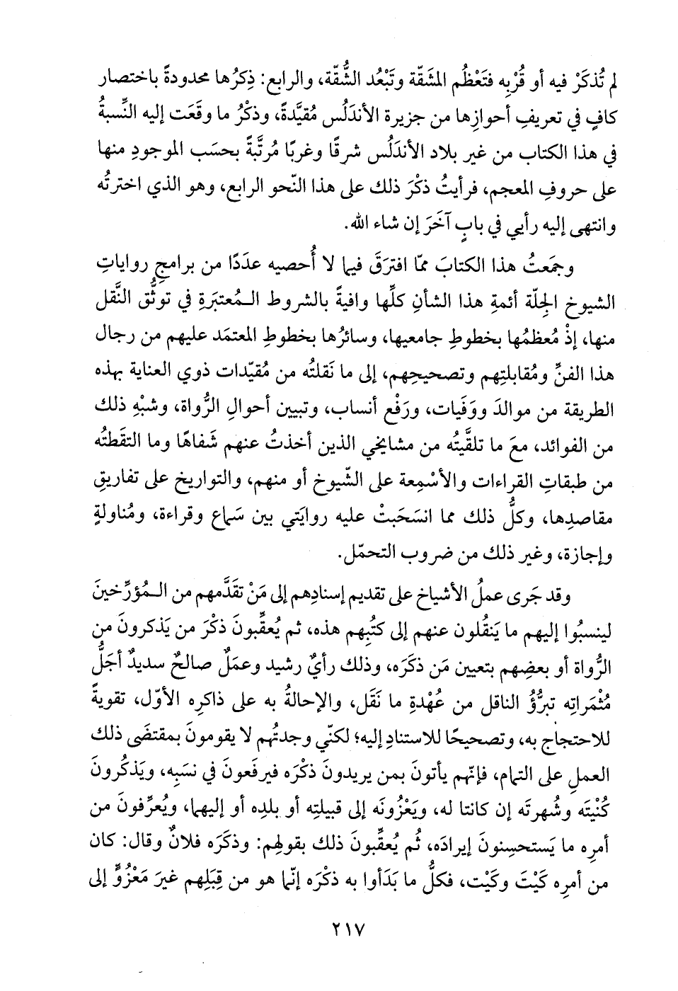 وقد جَرى عملُ الأشياخ على تقديم إسنادِهم إلى مَنْ تقَدَّمهم من المُؤرِّخينَ لينسبُوا إليهم ما يَنقُلون عنهم إلى كتُبِهم هذه، ثم يُعقِّبونَ ذكْرَ من يَذكرونَ من الرُّواة أو بعضِهم بتعيين مَن ذكَرَه، وذلك رأيٌ رشيد وعمَلٌ صالحٌ سديدٌ أجَلُّ مُثْمَراتِه تبرُّؤُ الناقل من عُهْدةِ ما نَقَل، والإحالةُ به على ذاكرِه الأوّل، تقويةً للاحتجاج به، وتصحيحًا للاستنادِ إليه؛ لكنّي وجدتُهم لا يقومونَ بمقتضَى ذلك العملِ على التمام، فإنّهم يأتونَ بمن يريدونَ ذكْرَه فيرفَعونَ في نسَبِه، ويَذكُرونَ كُنْيتَه وشُهرتَه إن كانتا له، وَيعْزُونَه إلى قبيلتِه أو بلدِه أو إليهما، ويُعرِّفونَ من أمرِه ما يَستحسِنونَ إيرادَه، ثُم يُعقِّبونَ ذلك بقولهِم: وذكَرَه فلانٌ وقال: كان من أمرِه كَيْتَ وكَيْت، فكلُّ ما بَدَأوا به ذكْرَه إنّما هو من قِبَلِهم غيرَ مَعْزُوٍّ إلى