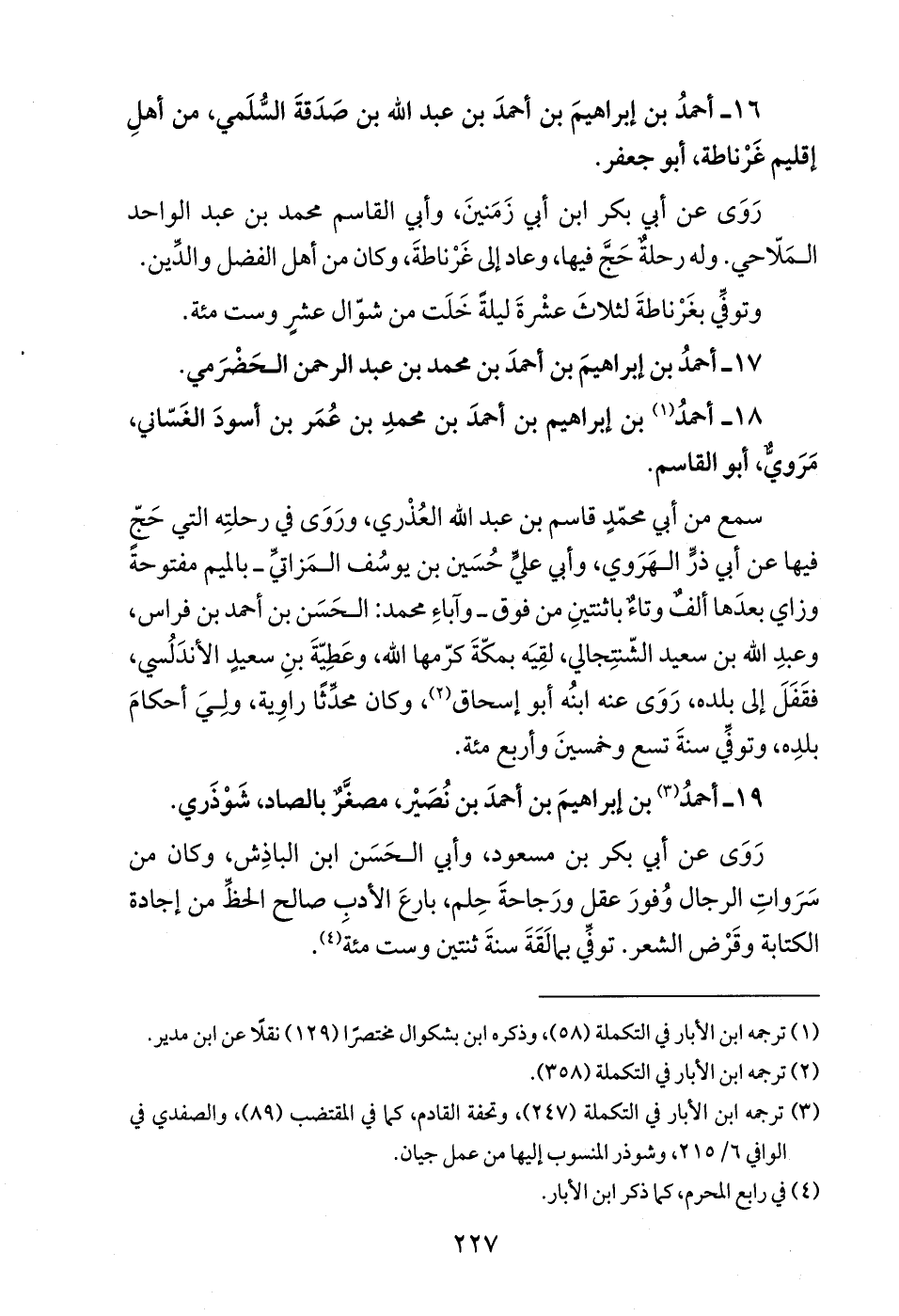 16 - أحمدُ بن إبراهيمَ بن أحمدَ بن عبد الله بن صَدَقةَ السُّلَمي، من أهلِ إقليم غَرْناطة، أبو جعفر.