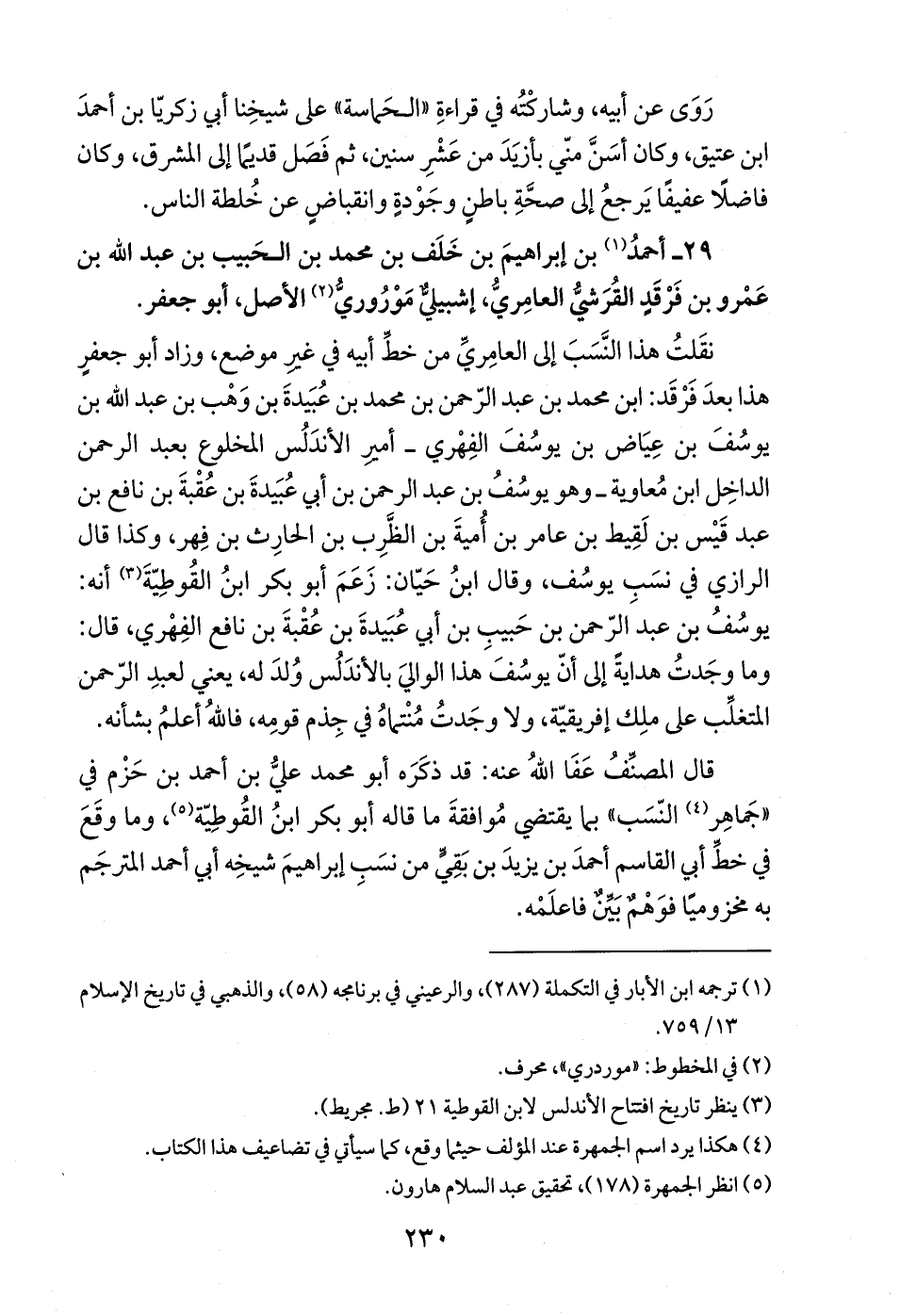 قال المصنِّفُ عَفَا اللهُ عنه: قد ذكَرَه أبو محمد عليُّ بن أحمد بن حَزْم في "جَماهِر (¬4) النّسَب" بما يقتضي مُوافقةَ ما قاله أبو بكر ابنُ القُوطِيّة (¬5)، وما وقَعَ في خطِّ أبي القاسم أحمدَ بن يزيدَ بن بَقِيٍّ من نسَبِ إبراهيمَ شيخِه أبي أحمد المترجَم به مخزوميًا فوَهْمٌ بَيِّنٌ فاعلَمه.