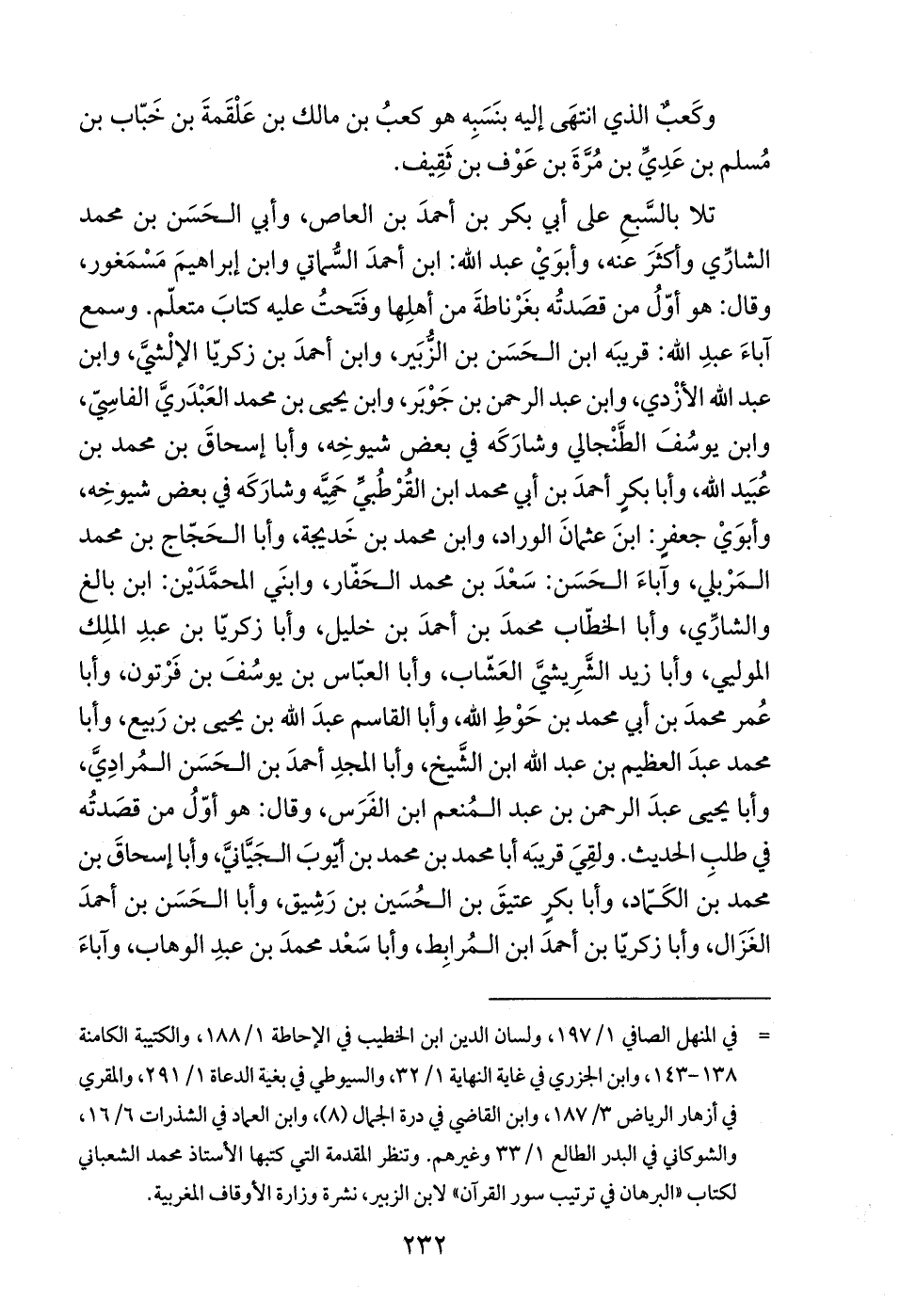 = في المنهل الصافي 1/ 197، ولسان الدين ابن الخطيب في الإحاطة 1/ 188، والكتيبة الكامنة 138 - 143، وابن الجزري في غاية النهاية 1/ 32، والسيوطي في بغية الدعاة 1/ 291، والمقري في أزهار الرياض 3/ 187، وابن القاضي في درة الجمال (8)، وابن العماد في الشذرات 6/ 16، والشوكاني في البدر الطالع 1/ 33 وغيرهم. وتنظر المقدمة التي كتبها الأستاذ محمد الشعباني لكتاب "البرهان في ترتيب سور القرآن" لابن الزبير، نشرة وزارة الأوقاف المغربية.