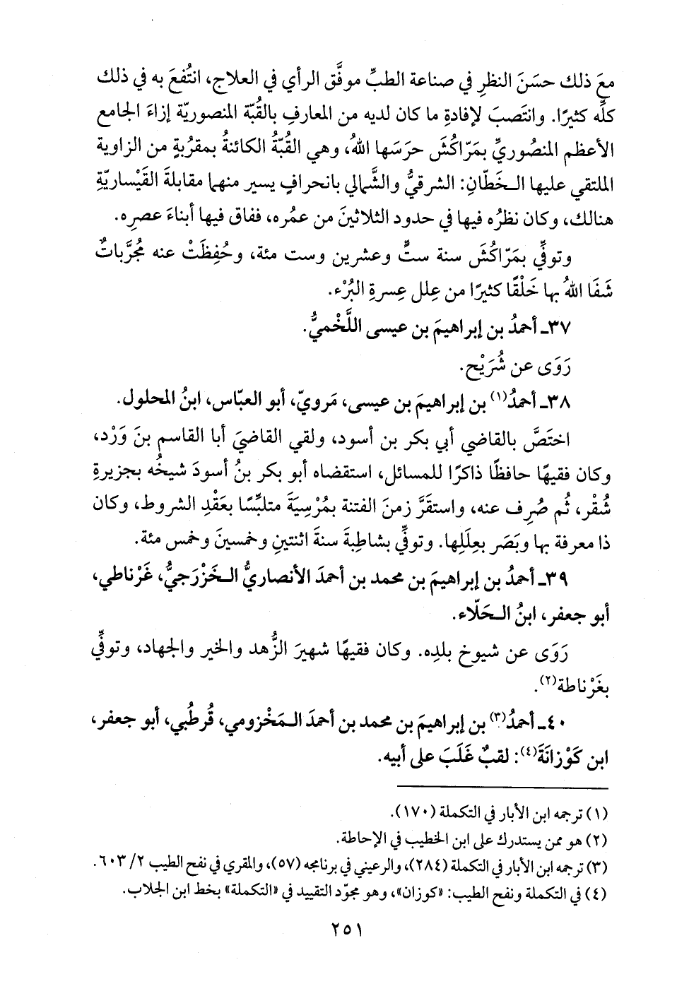 40 - أحمدُ (¬3) بن إبراهيمَ بن محمد بن أحمدَ المَخْزومي، قُرطُبي، أبو جعفر، ابن كَوْزانَةَ (¬4): لقبٌ غَلَبَ على أبيه.