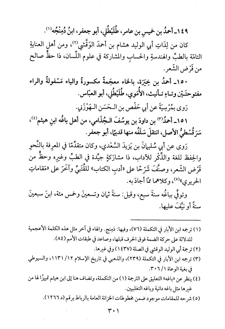 149 - أحمدُ بن خميسِ بن عامر، طُلَيْطُلي، أبو جعفر، ابنُ دُمِنْجُه (¬1).