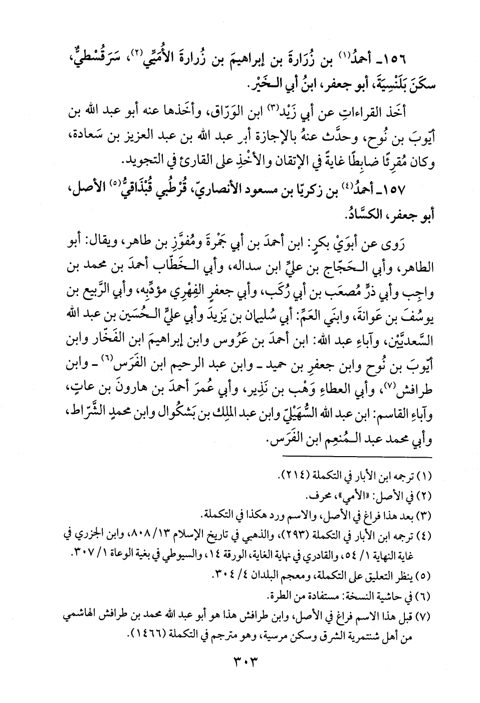 156 - أحمدُ (¬1) بن زُرَارةَ بن إبراهيمَ بن زُرارةَ الأُمَيِّي (¬2)، سَرَقُسْطيٌّ، سكَنَ بَلَنْسِيَةَ، أبو جعفر، ابنُ أبي الخَيْر.