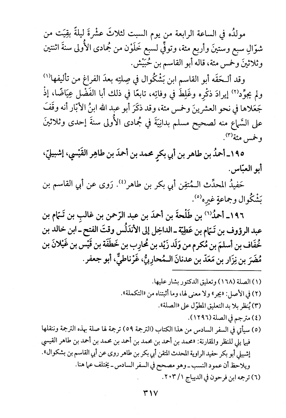 (¬5) سيأتي في السفر السادس من هذا الكتاب (الترجمة 59) ترجمة لها صلة بهذه الترجمة وننقلها فيما يلي للنظر والمقارنة: "محمد بن أحمد بن محمد بن أحمد بن محمد بن أحمد بن طاهر القيسي إشبيلي أبو بكر حفيد الراوية المحدث المتقن أبي بكر بن طاهر روى عن أبي القاسم بن بشكوال".